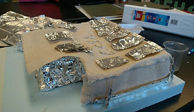 Today we got the materials for our HAB. 10 sheets of tin foil and a sheet of fabric. We installed our base tinfoil foundation and added some of the fabric for the HAB's walls held up with toothpics